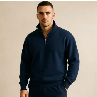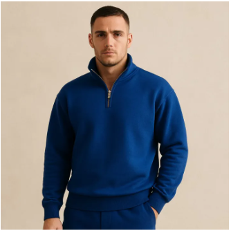 White Men Classic Quarter Zip-Up Fleece Sweatshirt For Men