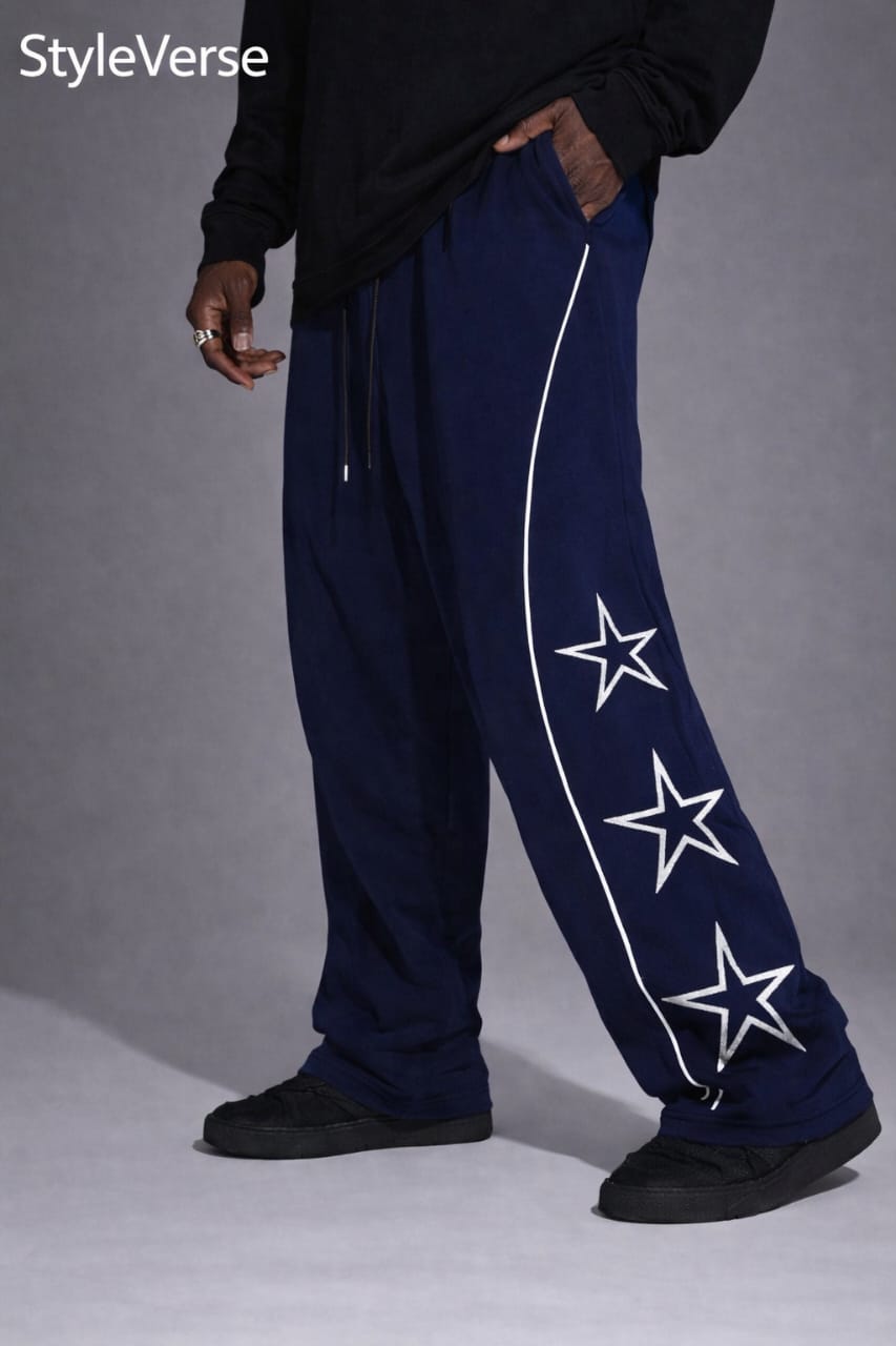 Add a bold and trendy touch to your wardrobe with the stylish StyleVerse Side Star Printed WideLeg Trouser. Designed for those who love street fashion and comfort together, this trouser features eye-catching side star print with a relaxed wide-leg fit that gives a modern oversized look.